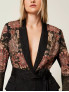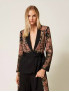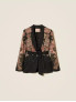 Опис: Класичний жакардовий блейзер із флоральним візерунком пейсли, виконаний у вільному крої з підкладкою і поясом для регулювання силуету на талії. Модель має однобортну застібку на ґудзики, вшиті плечі, довгі рукави та стандартну довжину до стегон. Вона поєднує жіночність і комфорт, підходить для створення витончених образів осінньо-зимового сезону 2025 року. Рекомендації з догляду: не прати, не застосовувати відбілювачі, делікатна хімчистка, прасування при низькій температурі.