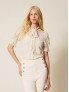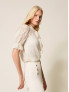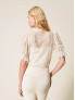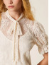 Опис: Елегантна сорочка з мережива, прикрашена стильним бантом, що додає жіночності та витонченості. Крій прямий з акцентами на мереживних вставках забезпечує комфортне носіння та практичність для щоденного використання, підходить для весняно-осіннього сезону. Легкість тканини робить її ідеальною для створення шарів у образах, поєднуючи романтичну естетику з універсальністю.
