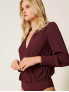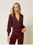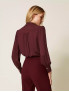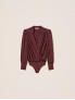 Опис: Боді має драпірування, яке елегантно підкреслює силует. Виконане з креп-шифону та нижньої частини з трикотажного джерсі для комфорту. Має V-подібний виріз із перехрещенням, довгі рукави з манжетами на ґудзиках, застібається застібкою-блискавкою. Рекомендації по догляду включають ручне прання в теплій воді з дбайливим режимом, не відбілювати, не сушити в пральній машині, прасувати при низькій температурі, хімічне чищення з обережністю. Модель відрізняється витонченістю і підходить для створення елегантних образів.