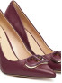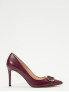 Опис: Ці туфлі-лодочки виконані з м'якої овечої шкіри фіолетового кольору "Дегустація вина". Вони мають гострий носок та жорсткий задник, який стабілізує п'яту та утримує стопу, не даючи їй вислизати під час руху. Висота каблука становить 9 см, що надає їм елегантний силует. Підкладка виготовлена з міцного та комфортного поліуретану, а підошва - з зносостійкої гуми. Дизайн доповнений фірмовим елементом Oval T, що підкреслює стиль бренду TWINSET. Ця модель ідеально підходить для офісу, урочистих подій та формальних вечерь.