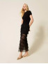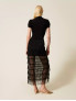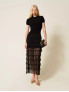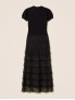 Опис: Облегаюча довга сукня з в'язаного верху та мереживної спідниці з плюметі, що створює багатошаровий ефект з горизонтальними вставками на тюлі. Еластичний крій забезпечує комфортне прилягання та практичність для теплої погоди, ідеальна для створення елегантних літніх образів. Поєднує текстуровану верхню частину з романтичною мереживною нижньою для універсального гардеробу.