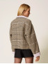 Опис: Подовжена куртка-пальто з лінії Actitude від TWINSET, виконана з комбінованої вовняної тканини. Модель має прямий силует, широкі лацкани-ревери та однобортну застібку на ґудзики. Оснащена зручними прорізними кишенями. Особливість моделі — двостороння конструкція, що дозволяє носити пальто в різних стилях: один бік виконаний у мʼякій вовняній фактурі, другий — у більш гладкому контрастному варіанті. Пальто добре тримає форму, забезпечує тепло й підходить для осінньо-зимового сезону. Колір: беж / контрастний відтінок залежно від сторони носіння.