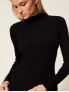 Опис: Приталений темно-чорний трикотажний светр з високим горлом і довгими рукавами. Виріб виготовлений в Італії, має прямий низ і ребристу фактуру, що створює стильний класичний образ. Рекомендоване ручне прання, без відбілювачів і сушіння в барабані.