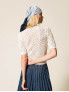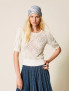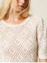 Опис: Об'ємна майка з рельєфним ромбоподібним візерунком з перфорованої в'язки, декорована перловими нитками для вишуканої деталізації. Вільний м'який крій з круглим вирізом та короткими рукавами на гумці забезпечує комфортне носіння та практичність для щоденного використання. Ідеальна для весняно-літнього сезону, поєднує текстуровану естетику з універсальністю багатошарових образів.