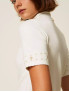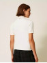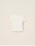 Опис: М'який і розслаблений светр з трикотажу, що розтягується, з високим горлом і короткими широкими рукавами. Край рукавів прикрашений стразами, що додає виробу святковий вигляд. На спині розташована овальна нашивка з логотипом "T". Виготовлений для комфорту в осінньо-зимовий сезон 2025/26.
