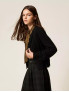 Опис: Кардиган від TWINSET з круглим вирізом, виконаний у фактурній в’язці «косичка» з декоративними вставками з люрексу. Модель має прямий силует, довгі рукави та застібку на гудзики. На спинці розташована металева пластинка у формі серця — фірмова деталь бренду. Кардиган поєднує м’якість пряжі та легкий блиск, підходить для елегантних міських образів, гарно комбінується з джинсами, спідницями міді та класичними брюками.
