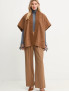 Опис: Вільне пончо з еластичного трикотажу з жакардовим мотивом Oval T, з V-подібним вирізом і рукавами до ліктя. Край оброблений ребристими манжетами, що додає виробу акуратного вигляду. Модель комфортна і стильно доповнює осінньо-зимовий гардероб 2025 року. Рекомендації з догляду: ручне прання без відбілювачів, делікатне прасування.