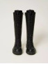 Опис: Елегантні високі снікерси чорного кольору поєднують у собі стиль і практичність. Висота підошви 3,5 см забезпечує комфорт при ходьбі. Верх виготовлений з поліестеру, а деталі з овечої шкіри додають виробу витонченості і довговічності. Модель оснащена шнурівкою для надійної фіксації стопи, що робить її ідеальним вибором для повсякденного активного носіння.