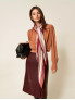 Опис: Легка шарф-кефія від TWINSET з принтом у вигляді ланцюжків і фірмовим логотипом Oval T, квадратна форма 120×120 см. Виконана з віскозної пряжі з невеликим додаванням вовни для м’якості. Модель універсальна: може носитись і як шарф, і як шалик, і навіть як легка накидка-аксесуар. Принт додає динаміки, колір-«Alpaca Brown» робить її легко комбінованою з костюмами, пальтами та куртками.