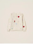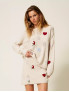 Опис: Вільний светр максі довжини з круглим вирізом і довгими рукавами, виготовлений в Італії з пряжі Treeblend, яка поєднує вовну, віскозу і кашемір. Модель має контрастну вишивку та різноманітні візерунки в'язки, що додають текстуру і стиль. Ідеально підходить для прохолодного сезону, поєднує комфорт і елегантність.