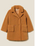 Опис: Пальто для дівчинки з лінії Actitude від TWINSET, виконане з м’якого еко-хутра у теплому відтінку camel. Модель має широкий силует, великі лацкани, двобортну застібку на гудзики, накладні кишені та довгі рукави з легким спуском плеча. Пальто має приємну на дотик фактуру, добре тримає форму та забезпечує комфорт у холодну пору року. Підходить для повсякденних і ошатних образів, легко