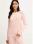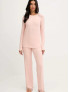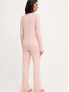 Опис: Комплект піжами від TWINSET — топ із довгими рукавами та штани з еластичною талією. Виконаний з м’якої трикотажної тканини з пражковою структурою, яка добре тягнеться та забезпечує комфорт. Прямий крій топу та вільні штани дозволяють рухатись вільно, манжети на рукавах і пояс-резинка на штанах гарантують посадку. Колір помаранчевий надає виробу свіжості й актуальності. Ідеальний варіант для домашнього відпочинку або як stylish ліжко/вихід-вітра.