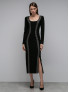 Опис: Плаття має облягаючий крій з акцентними вставками з люрексом, вирізом та металевою деталлю з логотипом A, що створює ефектний жіночний силует з елементами гламуру. Виріб з трикотажу підходить для осінньо-зимового сезону, поєднує естетику сучасного стилю з практичністю для повсякденного та святкового носіння, забезпечуючи комфорт завдяки м'яким волокнам і еластичності. Універсальна модель легко комбінується з аксесуарами, а склад тканини гарантує довговічність, зручну посадку та простоту в догляді ручним пранням.