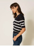 Опис: Легкий трикотажний джемпер з унікальним пуансонним плетінням на гладкій основі, що створює ефект двоколірних смужок, доповнена V-подібним вирізом, короткими рукавами та ребристими оздобленнями. Вільний розслаблений крій забезпечує комфортне носіння цілий рік, ідеально пасує для міжсезоння як самостійний елемент або база для багатошарових образів. Поєднання органічної бавовни з кашеміром гарантує м'якість, практичність та екологічність, роблячи модель універсальною для повсякденного стилю.