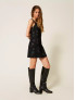 Опис: Чорна коротка сукня з тканини букле, прикрашена вишивкою у вигляді квітів по всій поверхні. Виріб має прямий крій, без рукавів, з квадратним вирізом і прихованою застібкою-змійкою ззаду для зручності надягання. Сукня створює елегантний і романтичний образ, ідеальний для урочистих випадків і вечірніх заходів. Матеріал міцний, забезпечує стійкість до зморщування, догляд – ручне прання або делікатне хімічне чищення.
