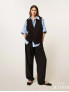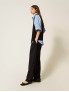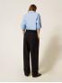 Опис: Ефектні жіночі брюки з лінії Actitude, виконані з гладкої костюмної тканини, що поєднує легкість поліестеру, еластичність еластану та м’якість віскози. Модель має широкі штанини (wide fit), виражені асиметричні складки спереду, вузьку посадку на талії з застібкою-блискавкою та гачком, а також декоративну металеву пластинку з логотипом. Ідеально підходять для створення сучасного офісного чи smart-casual образу: поєднуються з піджаками, блузами або базовими топами.