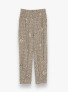 Опис: Ці штани мають прямий крій із середньою посадкою та класичним обробленим низом. Модель прикрашена яскравим леопардовим принтом і декоративними ґудзиками, що надає виробу стильного і виразного вигляду. Завдяки поєднанню натуральних і синтетичних волокон, штани забезпечують комфорт, довговічність та зручність у повсякденному носінні, ідеальні для міжсезоння.