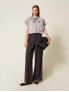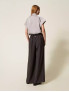 Опис: Широкі штани з лінії Archive від TWINSET із високою посадкою та силуетом палаццо, виконані з тканини злегка драпіруваної та м’якої на дотик. Спереду — акуратні складки, є застібка-блискавка та гудзик, тканина з віскозою забезпечує комфорт у носінні. Колір «tortora» або антрацит меланж, модель підходить для офісу або стильного міського образу.