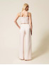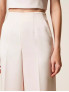 Опис: Широкі палаццо штани з дюшесової тканини кольору "Pink Sand" (ніжно-рожевий пісок), з високою посадкою та вільним кроєм для елегантного силуету, що підкреслює жіночність. Модель з колекції Primavera Estate 2026 виготовлена в Італії, ідеальна для весни-літа як універсальний елемент з блузками чи топами для офісних чи вечірніх образів. Рекомендований догляд: ручне прання при кімнатній температурі, без відбілювачів, без сушіння в машинці, прасування при низькій температурі, сухе чищення.