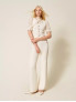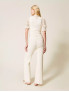 Опис: Вільні штани з м'якої в'язки з декоративними гачковими вставками, що створюють витончений рельєфний акцент, прямим кроєм та еластичною талією для комфорту. Модель бежевого кольору з колекції Primavera Estate 2026 ідеальна для весни-літа як універсальний базовий елемент casual образів з блузками чи светрами. Рекомендований догляд: без відбілювачів, без сушіння в машинці, прасування при низькій температурі.