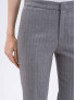 Опис: Прямі брюки сіро-блакитного відтінку з класичним кроєм і візерунком "ялинка". Модель має дві бічні та дві задні кишені, застібку на ґудзики і блискавку, а також декоративну металеву овальну нашивку з логотипом "Oval T" на поясі. Виготовлені з м'якої і комфортної суміші тканин з вовною, підходять для офісного стилю та осінньо-зимового сезону. Виготовлено в Італії. Рекомендовано суху чистку.