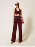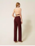 Опис: Брюки з кріп-шифону виконані у стилі палаццо, мають вільний крій і широку силуэтну форму. Застібаються на блискавку з бокового шва, оснащені знімним поясом з ланцюга, що додає сучасного вигляду. Вимірювання моделі: зріст 178 см, розмір S/40. Матеріал дозволяє створювати елегантні та комфортні образи для офісу або вечірніх виходів. Модель рекомендується прати вручну для збереження якості тканини і деталей.