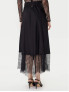 Опис: Елегантна спідниця довжиною до коліна з прямим кроєм, виготовлена з якісної віскозної тканини, що імітує атлас і доповнена мереживними вставками з поліаміду. Модель поєднує комфорт та жіночність, має класичний стиль з сучасними деталями, характерними для бренду TWINSET. Рекомендується дбайливий догляд ручним пранням, без застосування хлору та сушіння в пральній машині.