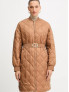 Опис: Чорна довга куртка прямого крою, що має стьобану структуру, застібається на повну блискавку з високим коміром стійкою. Куртка оснащена поясом з пряжкою Oval T для регулювання силуету, плечі спущені, довжина до коліна, дві накладні кишені збоку. Виріб легкий, теплий і комфортний, ідеальний для демісезонного періоду осінь-зима 2025. Стиль поєднує сучасність та практичність, характерний для бренду TWINSET. Рекомендовано делікатне прання або хімчистка для збереження форми і якості виробу.