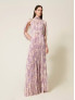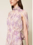 Опис: Вільне довге плаття з крепу у ніжних відтінках білого та лілового з квітковим принтом. Модель має плісировану структуру, що надає виробу легкості та рухливості. Виріб виготовлений в Італії з високою якістю, ідеально підходить для елегантних та романтичних образів.