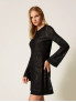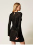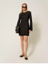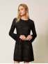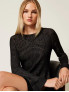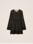 Опис: Елегантне плаття з приталеним верхом і вільною спідницею міді, виконане з відкритого трикотажу з подвійною біколірною обробкою. Модель має круглий виріз горловини, довжина до середини стегна, що створює жіночний і вишуканий силует. Розмір моделі S/40, зростання 178 см. Плаття рекомендовано хімчистку, не прати в домашніх умовах.