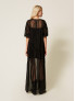 Опис: Ефектна довга сукня TWINSET з лінії Actitude, виконана з легкої напівпрозорої вуалі з тюлевими елементами. Модель має конструкцію «подвійної» сукні: зверху — повітряний прозорий шар, знизу — окрема сукня-комбінація з м’якої тканини в тон, що забезпечує комфортну посадку та коректне прикриття. Силует прямий із мʼяким розкльошенням донизу, що створює витягнутий, струмливий контур. Довгі рукави з напівпрозорої тканини додають легкості образу, а акуратний виріз горловини підтримує лаконічний, елегантний вигляд. Сукня ідеально підходить для вечірніх виходів, урочистих подій і особливих випадків, але її можна стилізувати й у сучасних міських образах — з грубими чоботами, жакетами чи шкіряними куртками. Колір: чорний.