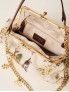 Опис: Сумка-плече від TWINSET шитa з жакардової тканини з квітковим візерунком і люрексовою ниткою. Має металевий каркас із застібкою-кнопкою, коротку ручку-петлю, знімний ланцюговий ремінь для носіння через плече або на плече, і шкіряний ярлик з логотипом бренду. Універсальна за розміром (34×21×5 см), ідеальна як для денного, так і для вечірнього образу.
