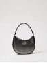 Опис: Компактна сумка-бохо з тканини, покритої рінстонами деграде, що створюють ефект плавного переходу кольорів. Оснащена короткою ручкою з екошкіри та застібкою на блискавку зверху для зручності. Унікальний дизайн доповнює овальний металевий логотип Twinset у золотистому кольорі з рінстонами. Ідеальний аксесуар для вечірніх виходів, поєднує стиль та функціональність.