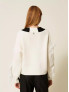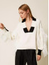 Опис: Жіночий светр TWINSET колекції MYFO має об'ємний в'язаний візерунок кос і бахрому, що додає моделі особливого шарму і текстурності. Модель виконана в двоколірній гамі Arctic Wolf White/Black і надає стильний вигляд для прохолодного сезону. Поєднує комфорт теплої тканини і сучасний дизайн.