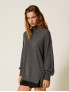 Опис: Об’ємний светр‑водолазка TWINSET з лінії Actitude, виконаний із м’якої змішаної пряжі з додаванням вовни. Модель має лінію over, що створює розслаблений силует, та високий комір‑lupetto. Светр пов’язаний гладкою в’язкою (rasata), з боковими розрізами по низу та трохи подовженою спинкою. На задній частині розташована фірмова металева пластинка з логотипом бренду. Ідеально підходить для повсякденних і міських образів: поєднується з джинсами, широкими штанами, шкіряними спідницями та жакетами.