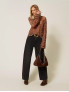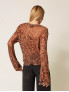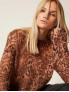 Опис: Вільний светр кольору кави з анімалістичним жакардовим візерунком у коричневих відтінках. Має круглий виріз горловини, довгі рукави з манжетами та хвилясту текстуру візерунка. Виготовлений із м’яких і теплих матеріалів, підходить для осінньо-зимового сезону. Рекомендовано ручне прання.