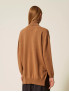 Опис: Пуловер від TWINSET з високим коміром-гольф, об’ємним силуетом (wide fit), довгими рукавами та асиметричним низом з боковими розрізами. Модель виконана повністю з кашеміру, що надає виробу преміального вигляду і м’якості. Ідеально підходить для холодного сезону і комбінується з джинсами, спідницями або пальто.