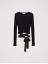 Опис: Особливості крою та стиль: фігурний крій, круглий виріз горловини, довгі рукави, декоративний великий бант спереду для акценту. підходить для осінньо-зимового періоду. романтичний і жіночний дизайн із витонченим бантом, що надає витонченості. м’який і легкий матеріал, рекомендовано ручне прання, не відбілювати та не сушити в машині. Модель ростом 178 см, розмір XS/40. Виготовлено в Італії. Відповідає стандартам якості Twinset.