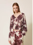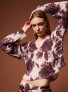 Опис: Вільний светр фіолетового кольору з квітковим жакардовим візерунком у відтінках бузкового та білого. Модель має круглий виріз горловини, довгі рукави з манжетами і прямий низ. Виготовлений в Китаї з комфортних і теплих матеріалів, рекомендований ручний догляд. Ідеальний для створення стильного і затишного образу в холодний сезон.