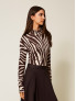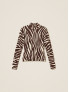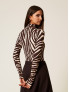 Опис: Лупетто з м’якої тканини з гладкою обробкою, високим коміром та довгими рукавами з розрізами на зап’ястях. Контрастні ребристі обробки надають моделі стильного вигляду, а металева нашивка з логотипом бренду на спині є брендовим акцентом. Вільний крій забезпечує комфорт і зручність, підходить для повсякденного носіння.