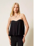Опис: Облягаючий топ-бюст'є з атласної тканини з розкльошеним кроєм, що створює жіночний силует, тонкими бретельками та ідеальним приляганням для акценту на фігурі. Модель з колекції Primavera Estate 2026 виготовлена в Італії, підходить для весни-літа як самостійний елемент чи основа для багатошарових образів. Рекомендований догляд: ручне прання, без відбілювачів, низькотемпературна прасування, сухе чищення.