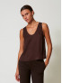 Опис: Особливості крою та стиль: приталений топ без рукавів з декоративним металевим логотипом Oval T, з боковими розрізами для додаткової зручності і легкості. підходить для весняно-літнього періоду, а також ідеально комбінується для шарами в інші сезони. стильний та сучасний виріб, що підкреслює жіночність і відповідає іміджу бренду Twinset. м’який і дихаючий матеріал забезпечує комфорт, рекомендована суха чистка для збереження якості тканини. Модель ростом 178 см, розмір 40. Виготовлено в Італії.