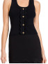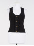 Опис: Облягаючий топ без рукавів з трикотажу крепового типу. Має круглий виріз горловини, декоративні фестони по краях і золотисті логотипні ґудзики спереду. Легкий і еластичний, відмінно поєднується з різними образами в осінньо-зимовому сезоні 2025/26. Модель одягнена в розмір S, зріст 175 см. Виробництво Китаю.