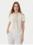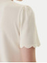 Опис: Вільний трикотажний светр з тонкої і еластичної пряжі, з декоративними фестонами по краях і великими овальними ґудзиками з логотипом "T". Має круглий виріз горловини і довгі рукави з вузькими манжетами. Виріб створений для комфорту та стильного повсякденного образу сезону осінь-зима 2025/26.