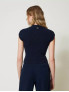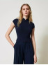 Опис: Особливості крою та стиль: облягаючий крій, довгі рукави, кольорові варіанти індиговий (синій), білий, чорний, декорована металевим логотипом Oval T. осінь-зима 2024-2025. лаконічний стиль із деталями бренду, які додають вишуканості. м’який і приємний до тіла матеріал, рекомендовано ручне прання, сушка природним шляхом, прасування при низькій температурі. Розмір моделі XS/40, зріст 178 см. Виготовлено в Італії. Відповідає високій якості бренду Twinset.