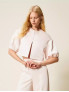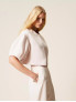 Опис: Короткий жакет з блискучої дюшес тканини, що має манжети balloon до ліктя з гумкою та сборками для об'ємного силуету. Круглий комір та прихована застібка на гакети забезпечують елегантне прилягання, роблячи його практичним для міжсезоння та створення багатошарових образів. Поєднує вишукану текстуру з універсальністю для повсякденного та святкового гардеробу.