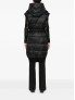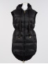 Опис: Черный стеганый жилет из легкой ветро- и влагоустойчивой ткани, с капюшоном на кулиске для регулировки, двойной застёжкой-молнией и передними карманами на кнопках. Внизу жилета имеется кулиска для регулировки объема по талии, а также контрастные трикотажные вставки по краям. Идеально подходит для прохладного сезона осень-зима 2025 года, сочетая удобство и стиль современного городского гардероба. Материал обеспечивает защиту от ветра и легкость в уходе, рекомендовано деликатное машинное или ручное стиривание.
